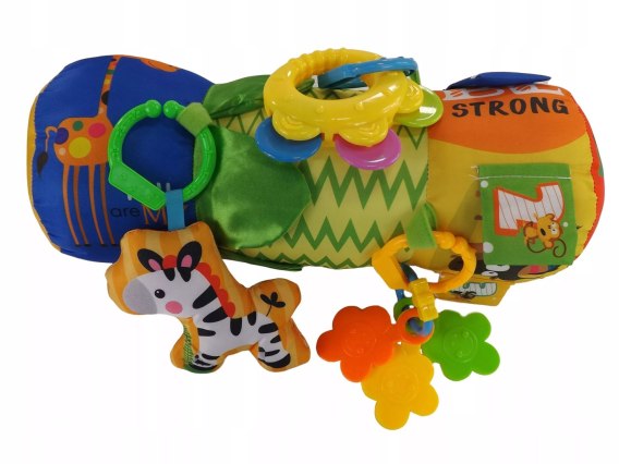 Ten miękki walec z szeleszczącymi elementami i kolorowymi zawieszkami to nie tylko sposób na fascynującą zabawę, ale także wsparcie w rozwoju sensorycznym Twojego dziecka.