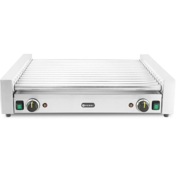 Podgrzewacz rolkowy do parówek XL dwustrefowy HENDI ma obudowę i rolki wykonane z wytrzymałej stali nierdzewnej. Szybko się nagrzewa i utrzymuje stałą temperaturę dzięki szybkiemu odzyskowi ciepła. Dwa niezależnie regulowane pola grzewcze pozwalają jednocześnie przygotowywać różne rodzaje kiełbasek lub innych produktów spożywczych w optymalnych temperaturach. Grill posiada 14 rolek o długości 65 cm, co zapewnia elastyczność podczas intensywnej pracy Wyjmowana tacka ociekowa ułatwia codzienne czyszczenie.
