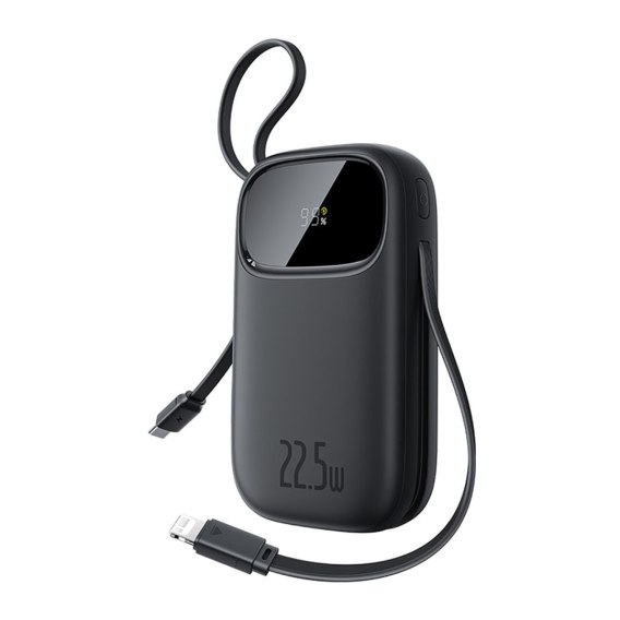 Powerbank 20000mAh 22.5W z wyświetlaczem kablami USB-C iPhone Lightning - czarny