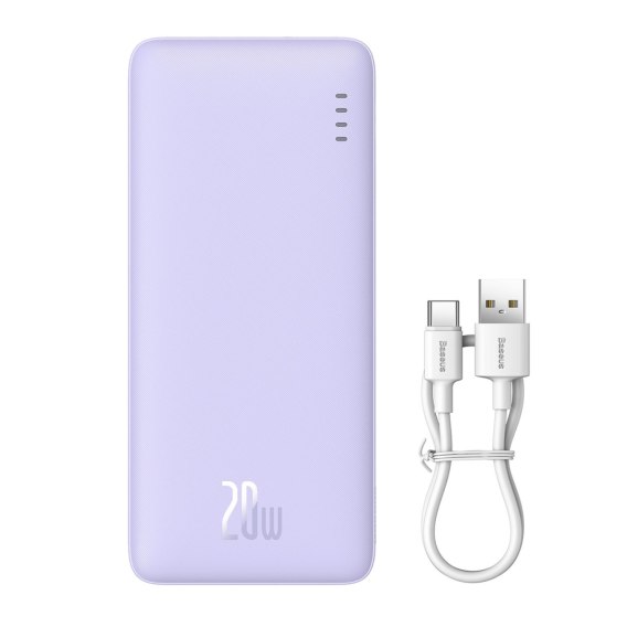Powerbank 20000mAh Airpow Fast Charge 20W z kablem USB USB-C 50cm - fioletowy