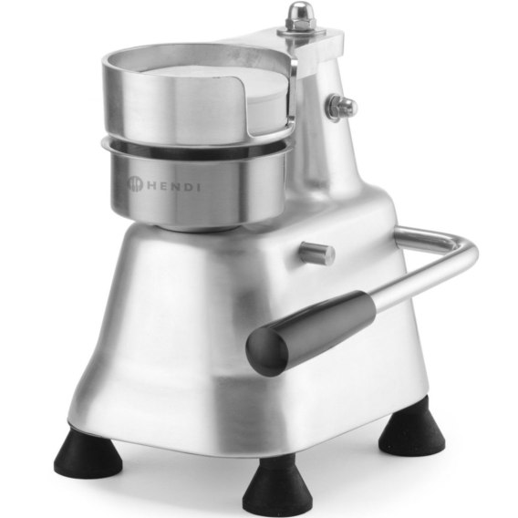 Kod producenta: 1030824 Prasa ręczna do hamburgerów HENDI ma wytrzymałą obudowę i stempel wykonane z anodowanego aluminium, co zapewnia długotrwałą i niezawodną pracę. Automatycznie podnosi hamburgera po uformowaniu, przyspieszając przygotowanie i ograniczając konieczność ręcznej obsługi. Praktyczna dźwignia ułatwia wyjmowanie hamburgera z tacy, a dołączone papierowe przekładki wspomagają efektywne i higieniczne układanie. Dzięki prostemu przyciskowi do opuszczania prasy oraz antypoślizgowym nóżkom zapewniającym dodatkową stabilność, prasa gwarantuje ergonomiczną pracę. Cechy produktu: