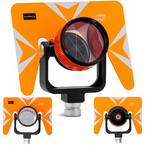 Pryzmat marki Steinberg Systems sprawdzi się przy budowie dróg oraz na placach budowy. Przesunięcie 0-30 mm pozwala dopasować pryzmat do tachimetru i optymalnie ustawić go na tyczce pomiarowej (nie wchodzi w zakres dostawy). Pozwala na to stabilny wspornik wykonany z galwanizowanego aluminium oraz gwint 5/8''. Obudowa wykonana została z tworzywa ABS, które chroni sprzęt przed wilgocią i kurzem. Lekka i wytrzymała konstrukcja ułatwia ustawienie punktu pomiarowego. Średnica 6,4 cm pozwala na wykorzystanie do wszystkich typowych pomiarów.