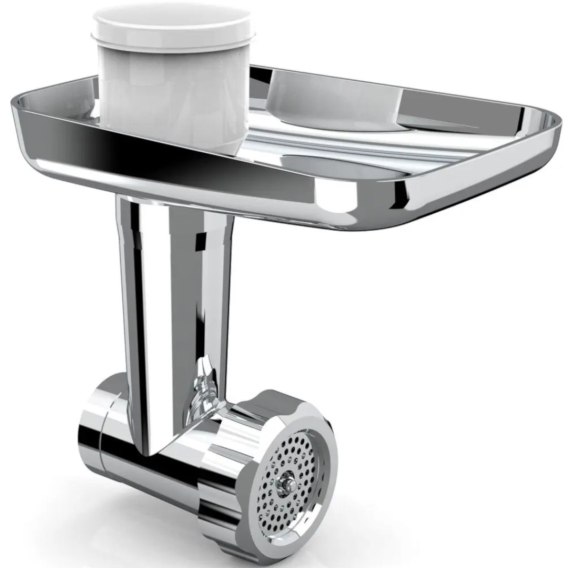 Kod producenta: 230114 Przystawka do mielenia mięsa do miksera Blackbolt firmy HENDI pozwala użytkownikom planetarnego miksera HENDI Blackbolt odkryć jeszcze więcej funkcji tego urządzenia. To kompletny zestaw do mielenia mięsa, zawierający tłuczek i zestaw do nadziewania, umożliwiający łatwe i szybkie przetwarzanie mięsa. Ostrze i 3 sitka do mielenia zostały wykonane ze stali nierdzewne, a gardziel, ślimak i taca z aluminium. Cechy produktu: