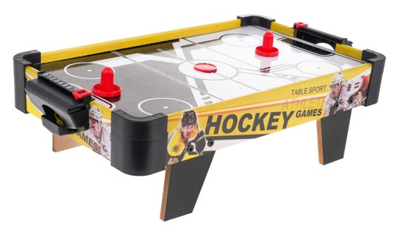Stół do cymbergaja - air hockeya dla dzieci od 3-go roku życia. AIR HOCKEY - to rodzaj popularnej gry zręcznościowej zaprojektowanej dla dwóch graczy. Do gry używany jest specjalnie przygotowany stół. Powierzchnia stołu jest pokryta otworami, przez które wydmuchiwane jest powietrze. Powstaje przy tym poduszka powietrzna, na której krążek ślizga się bez kontaktu z podłożem. Gracze stoją po przeciwnych stronach stołu. Każdy gracz używa specjalnego plastikowego narzędzia, zwanego czasem grzybkiem, spełniającego rolę rakietki. Przy pomocy tego narzędzia gracze uderzają krążek. Celem gry jest umieszczenie krążka w bramce przeciwnika. Krążek porusza się z dużą szybkością. Gra jest z reguły przerywana, gdy któryś z zawodników osiągnie określoną wcześniej liczbę punktów (najczęściej siedem lub dziewięć) lub po założonym limicie czasowym. Stół