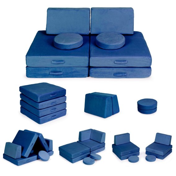 Modułowa budowa i poduchy o różnym kształcie dają dzieciom nieograniczone możliwości tworzenia przeróżnych konstrukcji, dzięki temu z wygodnej sofy Twoja pociecha może zbudować domek, zamek lub pojazd. Taki rodzaj zabawy gwarantuje wielką frajdę dzieciom, a przy okazji rozwija ich wyobraźnię i zdolności manualne.