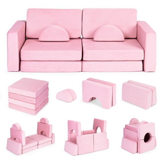SOFA SKŁADANA MODUŁOWA DLA DZIECI DUŻA 2-OSOBOWA DIY 10 MIĘKKICH PODUCH - RÓŻOWA ECOTOYS