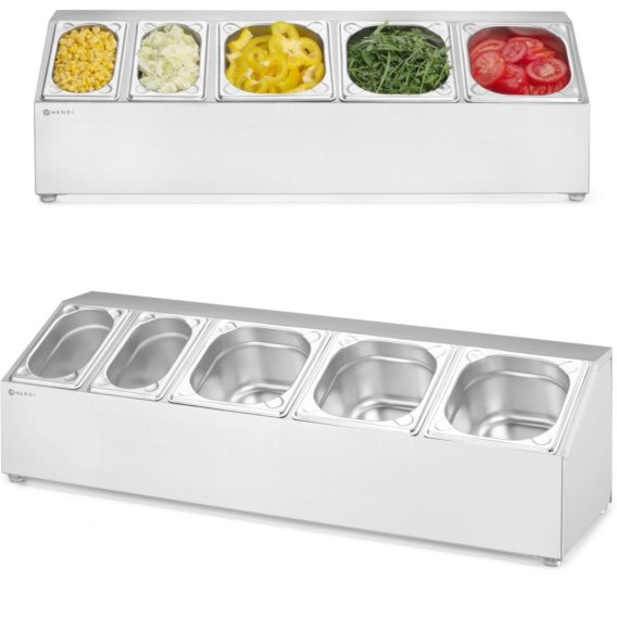 Stojak ekspozytor stalowy na pojemniki gastronomiczne 3x GN 1/6 2x GN 1/9