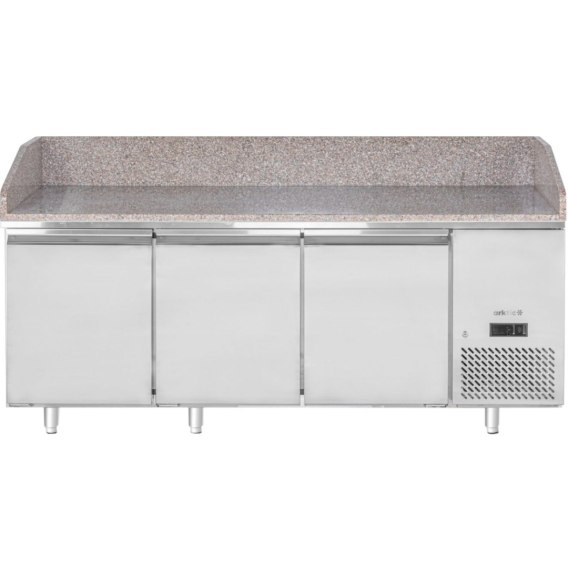 Stół chłodniczy do pizzy z granitowym blatem rantem 3-drzwiowy 375 l 400 W 201x80x88 cm