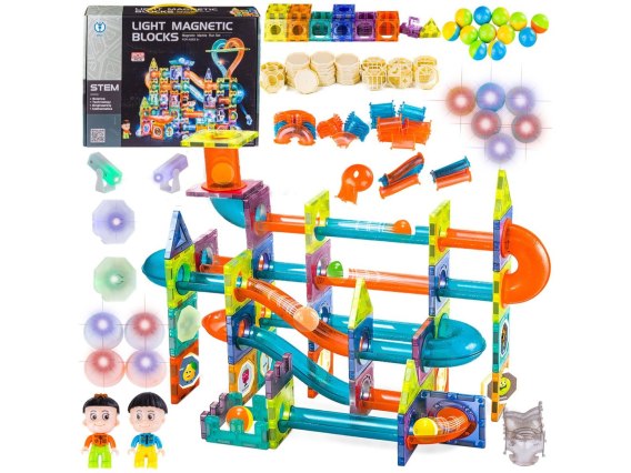 Świecące Klocki Magnetyczne, Tor Kulkowy Dla Kulek 202 Elementy Kulodrom