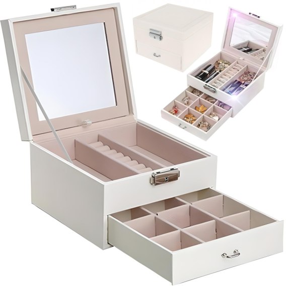 - Górne przegródki idealne na kolczyki i drobne akcesoria