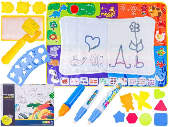 Wyjątkowa mata do malowania wodą została zaprojektowana z myślą o dzieciach, które uwielbiają rysować. Oprócz doskonałej zabawy zestaw gwarantuje stymulację zmysłów i wpływ na prawidłowy rozwój dziecka.
