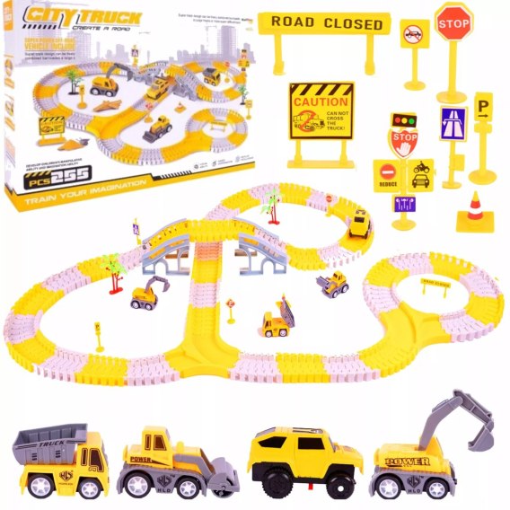 Tor samochodowy Budowlany 255 el. - auta pojazdy budowy zestaw dla dzieci