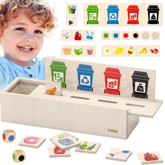 VIGA Układanka Gra edukacyjna drewniana do nauki sortowania śmieci