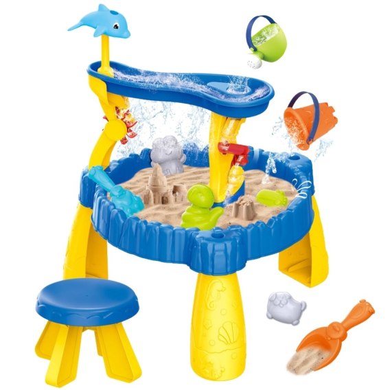 WOOPIE Stolik Wodny XL z Krzesełkiem 2w1 Piaskownica Delfinek 12el.