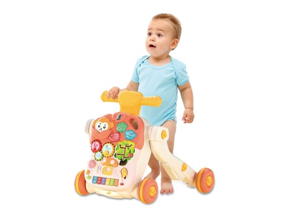 Nic tak nie uraduje dziecka, jak zabawka z niespodziankami, które można samodzielnie odkrywać. A ten pchacz posiada ich naprawdę wiele!