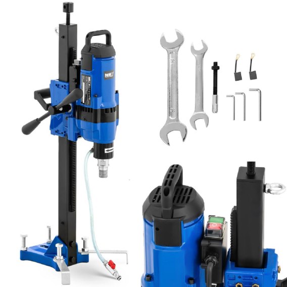 Profesjonalna wiertnica do betonu marki MSW posłuży do wycinania otworów w bardzo twardych materiałach np. zbrojonym betonie, naturalnym kamieniu, nawierzchni bitumicznej, asfalcie czy nawet w rurach kanalizacyjnych. Za doskonałą wydajność urządzenia odpowiada silnik o mocy 4000 W. Pozwala on uzyskać prędkość do 750 obr./min. Produkt uruchomisz za pomocą intuicyjnego przełącznika ON/OFF. Zamontujesz w niej wiertła otworowe o maksymalnej średnicy 260 mm. Dodatkowo maszyna ma też funkcję regulacji głębokości wiercenia. Do zmiany ustawienia służy obrotowa wajcha w kształcie litery T, która przesuwa urządzenie po pionowej prowadnicy. Nad bezpieczeństwem czuwa przełącznik różnicowoprądowy (PRCD) umieszczony na przewodzie zasilającym. Dodatkowo zastosowano ukryte szczotki węglowe oraz przyłącze do wody umożliwiające wiercenie na mokro.