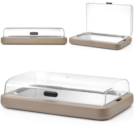 Witrynka chłodząca UNIQ HENDI zaprojektowana przez Roberta Bronwassera łączy design z funkcjonalnością zapewniając elegancką prezentację zimnych potraw. Solidna obudowa wykonana jest z polipropylenu, z przezroczystą pokrywą z ABS i tacą ze stali nierdzewnej gwarantującą trwałość. Zestaw zawiera tacę GN 1/1 i wkład chłodzący zapewniający optymalne utrzymanie temperatury. Cechy produktu: