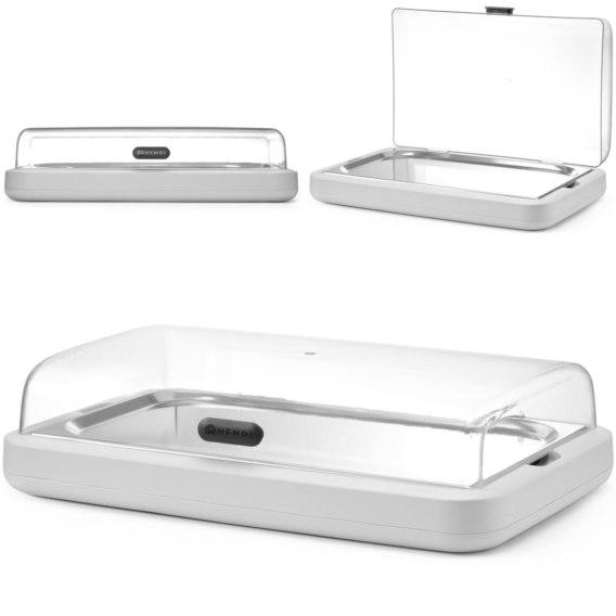 Witrynka chłodząca UNIQ HENDI zaprojektowana przez Roberta Bronwassera łączy design z funkcjonalnością zapewniając elegancką prezentację zimnych potraw. Solidna obudowa wykonana jest z polipropylenu, z przezroczystą pokrywą z ABS i tacą ze stali nierdzewnej gwarantującą trwałość. Zestaw zawiera tacę GN 1/1 i wkład chłodzący zapewniający optymalne utrzymanie temperatury. Cechy produktu:
