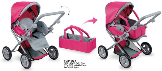 Śliczny, solidnie wykonany wózeczek 2 w 1 dla dzieci od 3-go roku życia. Wózek wykonany został z dbałością o detale, z solidnych materiałów, posłuży twojej pociesze przez długie lata. Zabawka ma funkcję 2w1, może być używana jako wózek z gondolką lub wózek spacerowy. Model posiada pasy, regulację siedziska, składany daszek oraz regulację uchwytu wózka. Jest lekki i łatwy w prowadzeniu już dla trzylatka. Do transportu można go złożyć, by nie zajmował wiele miejsca.