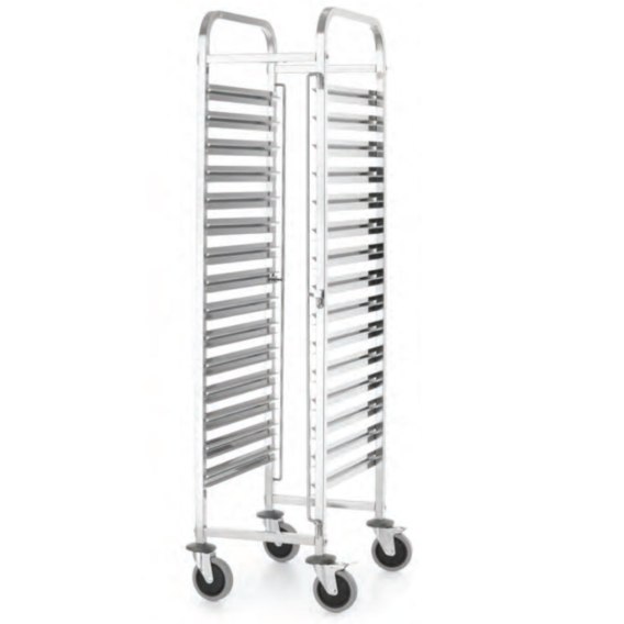 Kod producenta: 813270 Wózek Kitchen Line do transportu pojemników 15xGN 1/1. Przeznaczony został do wykorzystania w restauracjach, hotelach, barach szybkiej obsługi a także w firmach cateringowych lub domach weselnych. Konstrukcję wykonano z solidnej, łatwej w montażu i utrzymaniu czystości stali nierdzewnej AISI 201. Cechy produktu: