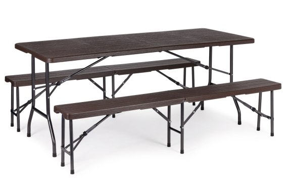 ZESTAW CATERINGOWY STÓŁ BANKIETOWY 180 CM + 2 ŁAWKI BRĄZ MODERNHOME