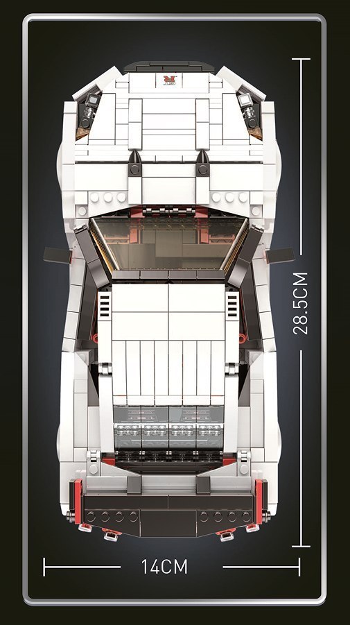 Zestaw 1034 klocków konstrukcyjnych do samodzielnej budowy białego samochodu sportowego. Zabawka przeznaczona dla dzieci od 8-go roku życia. Klocki i elementy autka wykonane zostały z wysokiej jakości tworzywa sztucznego. Dodatkowo, imitacje rur wydechowych i silnika zostały galwanizowane, dla bardziej realistycznego efektu.