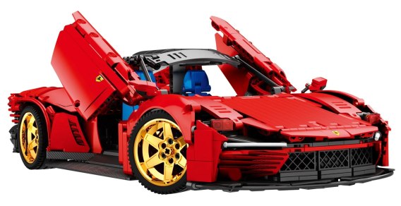 Zestaw 1958 klocków konstrukcyjnych do samodzielnej budowy czerwonego samochodu sportowego. Zabawka przeznaczona dla dzieci od 14-go roku życia. Klocki i elementy autka wykonane zostały z wysokiej jakości tworzywa sztucznego.