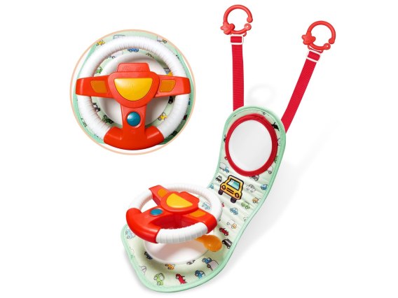 Kierownica ma ergonomiczny kształt i doskonale pasuje do małych dłoni dziecka. Kręcąc nią, maluch ćwiczy paluszki, dłonie i całe ręce. Przyciski pozwalają dziecku oswoić się z różnymi sposobami uruchamiania poszczególnych funkcji w zabawkach. Różnorodne dźwięki i melodyjki oswajają dziecko ze światem muzyki i pobudzają zmysł słuchu. Lusterko to z kolei doskonały sposób, by dziecko poznało bliżej samo siebie - oglądanie własnej buzi może być dla niego niezwykłym odkryciem.