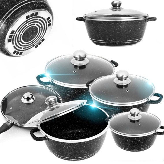 Zestaw garnków patelnia z powłoką ceramiczną pokrywkami - 12 el.
