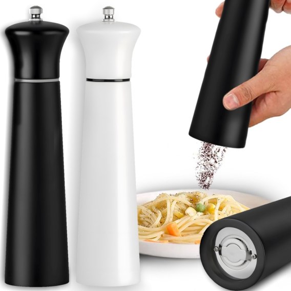 Kod producenta: 1029579 Zestaw dwóch ręcznych młynków do soli, pieprzu i przypraw wykonanych z naturalnego drewna kauczukowego to praktyczne i eleganckie wyposażenie każdej kuchni. Klasyczne kolory biały i czarny pozwalają łatwo odróżnić zawartość młynków, a solidna konstrukcja gwarantuje trwałość i komfort użytkowania. Dzięki uniwersalnemu mechanizmowi młynki sprawdzą się nie tylko do soli i pieprzu, ale również do wielu innych przypraw w ziarnach. Cechy produktu: