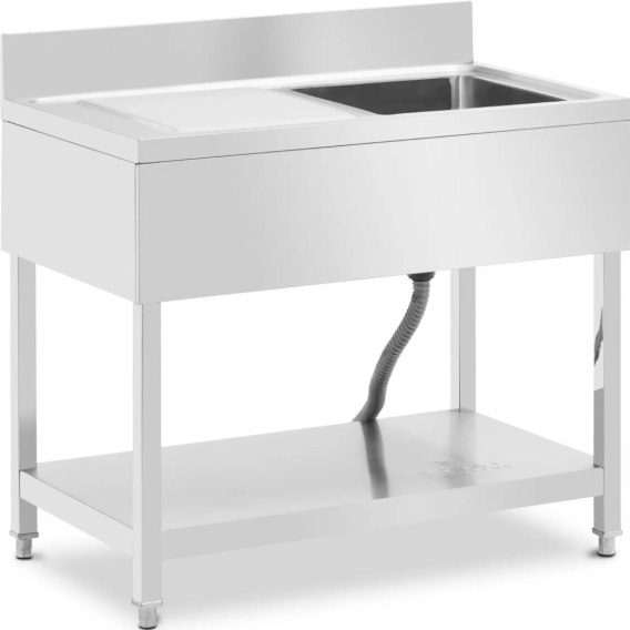 - Stół ze zlewem z ociekaczem i dolną półką zapewnia więcej miejsca do przechowywania,