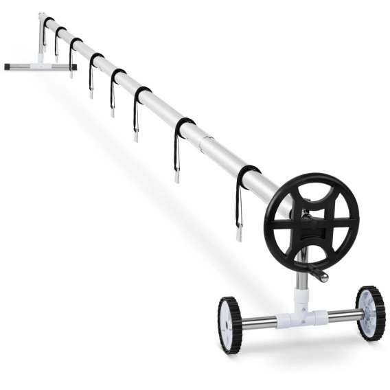 Kod producenta: 10250263 Rolka zwijająca do folii solarnej marki Uniprodo to niezbędny sprzęt sprawdzający się do zwijania i rozwijania osłony na basen aby chronić wodę przed zanieczyszczeniami i wychłodzeniem. Wyróżnia się trwałą konstrukcją oraz łatwą i bezwysiłkową obsługą. Urządzenie posiada regulowaną szerokość, co pozwala na wykorzystanie do zbiorników o wymiarach od 4,2 do 5,2 m. Można do niej zamontować również wszystkie popularne typy folii solarnych. Podstawa w kształcie litery T na jednym końcu i ciężkie koła na drugim zapewniają stabilność, a jednocześnie mobilność. Urządzenie wykonano z aluminium, stali nierdzewnej oraz tworzyw sztucznych, dzięki czemu sprzęt nie koroduje, a metalowe części pozostają jasne i lśniące nawet po latach użytkowania. Stal ma wysoką odporność na uderzenia czy odkształcenia, za to aluminium jest bardzo lekkie i wytrzymałe. Zwijarkę obsługuje się ręcznie za pomocą korby, co pozwala szybko rozwinąć lub zwinąć osłonę na basen. Obsługą zwijarki bez problemu może się zająć jedna osoba, co ułatwia czyszczenia i konserwację basenu. Cechy produktu: